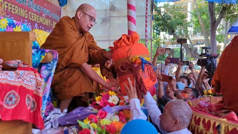 শুক্রবার ৩১ অক্টোবর দুপুরে রাঙ্গামাটি রাজবন বিহার প্রাঙ্গণে লাখো বৌদ্ধ ধর্মীয় সমাবেশে প্রয়াত পার্বত্য ধর্মীয় গুরু সাধনানন্দ মহাস্থবির বনভন্তে স্মৃতির উদ্দেশ্যে বিশাখা প্রবর্তিত নিয়মে ২৪ ঘণ্টায় প্রস্তুতকৃত চীবর রাঙ্গামাটি রাজবন বিহারের ভিক্ষু সংঘের প্রধান শ্রীমৎ প্রজ্ঞালংকার মহাস্থবিরের হাতে চীবর উৎসর্গ করেন সাবেক সংসদ সদস্য ঊষাতন তালুকদার।