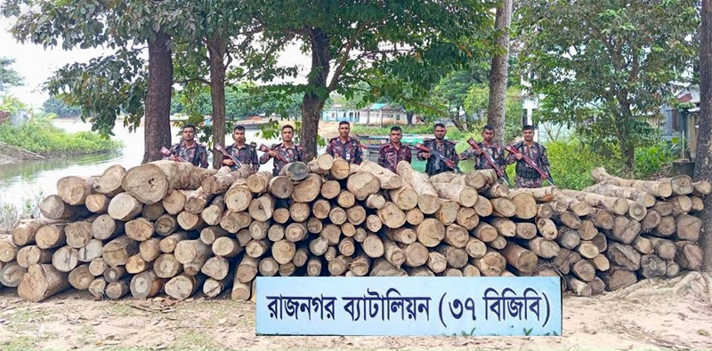 রাজনগর ব্যাটালিয়ন (৩৭ বিজিবি) এর অভিযানে ৬ লক্ষাধিক টাকা বিপুল পরিমাণ অবৈধ কাঠ জব্দ